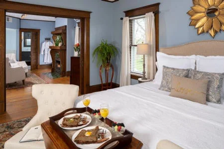 The first building (“the Castle”) is a lovingly restored Victorian mansion featuring much of the original decor, but with the modern touches one would expect for a luxurious retreat. The second, was started in the 1980s as an artist’s retreat and then grown to include multiple guest rooms, event spaces, and a full commercial kitchen to serve a small restaurant that was present at the time. The current owners have done extensive renovations to both, and now the Inn features 10 rooms/suites with WiFi, jetted tubs, fireplaces, king or queen sized beds, and private baths and all the amenities a discerning guest appreciates.