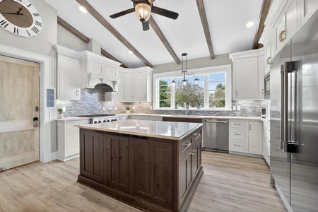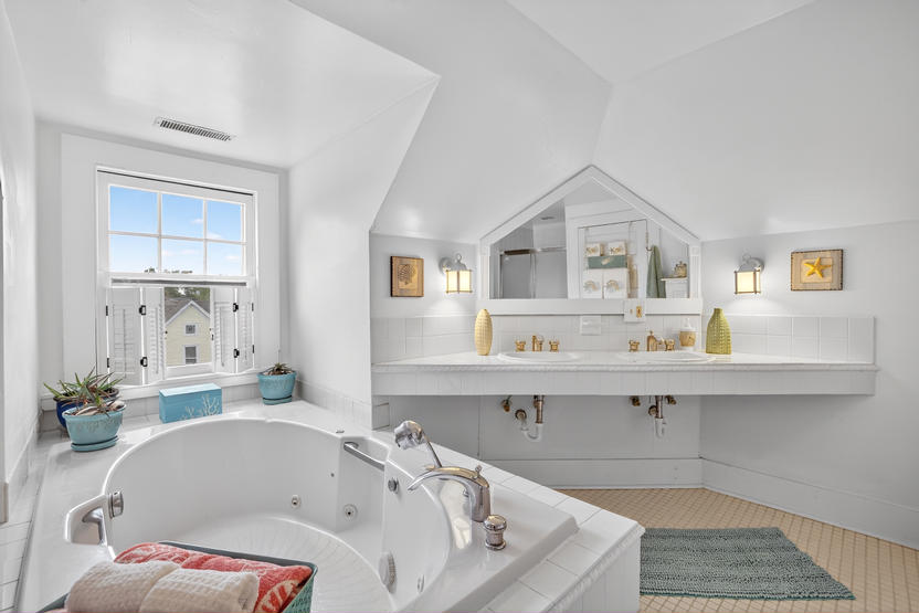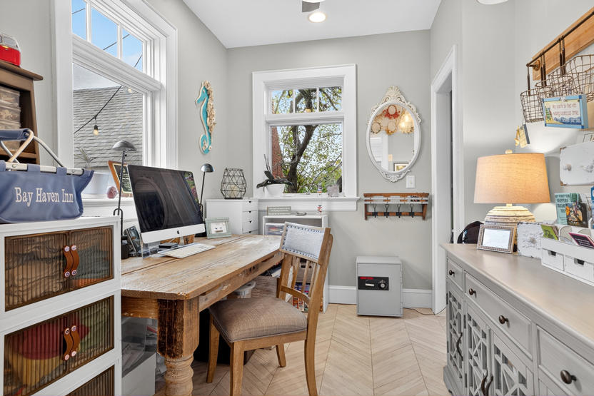 Third floor bedroom with attached full bath and walk-in closet with laundry. Second third floor room currently used as large walk-in closet and a second full bath with jetted tub. Expansive kitchen and living space on first floor, complete with full bath, office and plenty of storage.