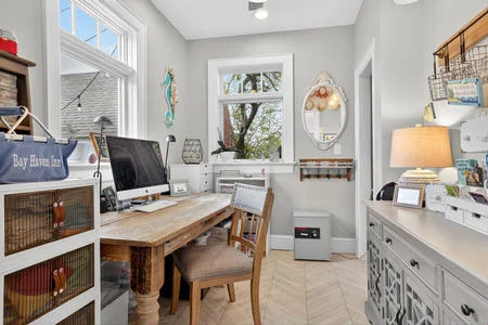 Live the Cape Charles Coastal Dream. This iconic 1906 three-story home captures the timeless charm of the era while offering modern comforts. Voted Best of Coastal Virginia as a thriving turnkey Bed & Breakfast, it sits in the heart of Cape Charles, VA—recognized by HGTV as one of the Top 40 Most Charming Small Towns in America. Inside, the home boasts a grand kitchen with cathedral ceilings and high-end appliances, inviting living spaces, and historic details throughout. A sweeping southern wraparound porch surrounded by impeccable gardens sets the stage for gatherings, relaxation, and hospitality. Perfectly located just blocks from the Chesapeake Bay, beach, vibrant downtown and adjacent to the community park that hosts lively concerts and events, this property offers a rare blend of history, lifestyle, and opportunity in one of Virginia’s most beloved coastal towns. Live like a local enjoying stunning sunsets, award-winning restaurants and this towns iconic “cart life” vibe.
