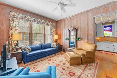 This timeless Southern estate, built in 1941 and surrounded by pecan, oak, and magnolia trees, offers endless opportunities as a private residence, retreat, or event space. The main floor features spacious gathering areas including a large living area, dining and breakfast rooms, sun parlor, living room, wet bar, and den. Outside, formal gardens and expansive lawns provide serene views, while a 1 mile nature trail winds to a 10-acre lake perfect for fishing, wildlife watching, or quiet reflection. Let your imagination run wild from operating a bed and breakfast, which has been in operation since the 1980's! Owning this property allows you to offer a recreational paradise, while allowing others to come experience true Southern charm.