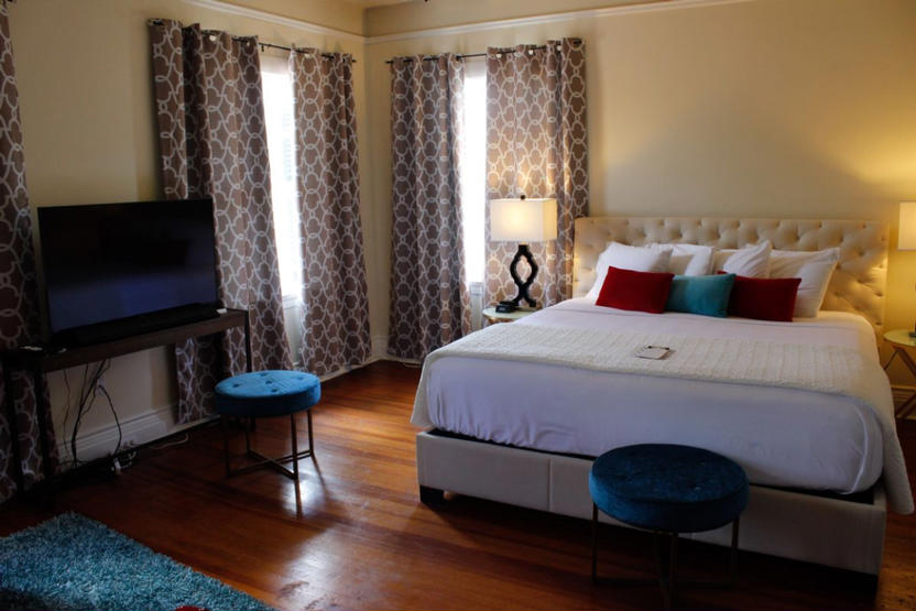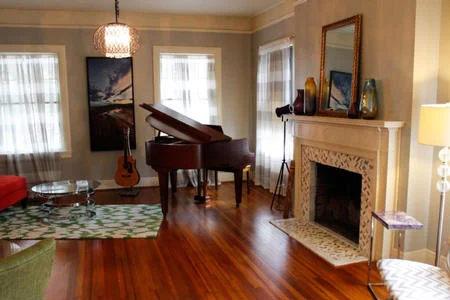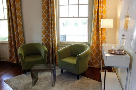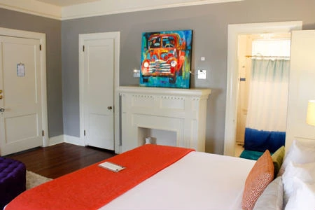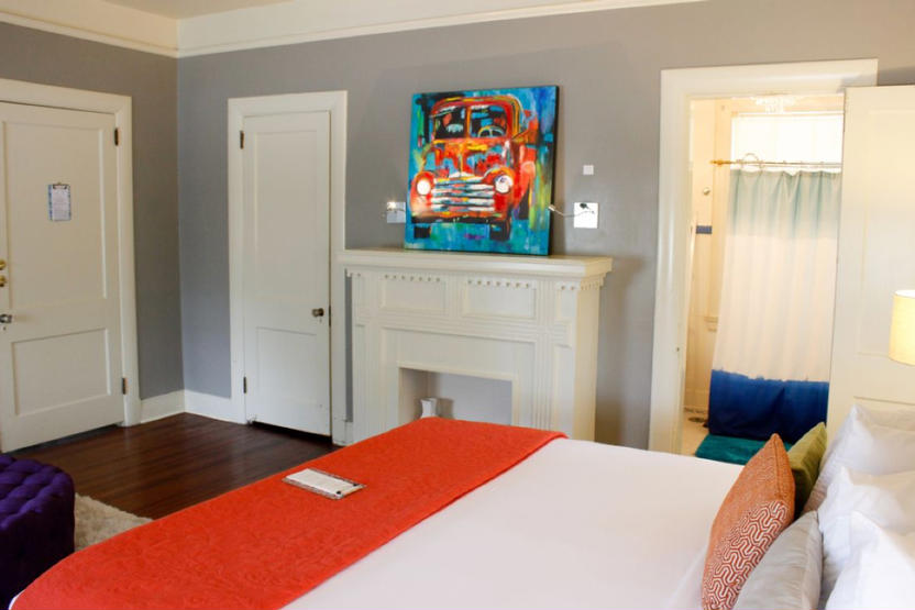 Main Street House is a cozy 1920s brick mansion that was lovingly restored and converted to a B&B + art museum + health and wellness retreat. All 5 guest rooms have en-suite baths, sitting areas, lots of local art, and current tech gadgets and network connections.