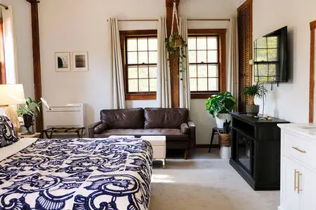 Fully updated 2BR/1BA getaway space on the third floor. Lots of windows for enjoying the serenity of Marl Creek, gardens, and surrounding forest. Could also be converted to guest inventory. No legal requirements for on-site staffing.