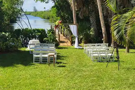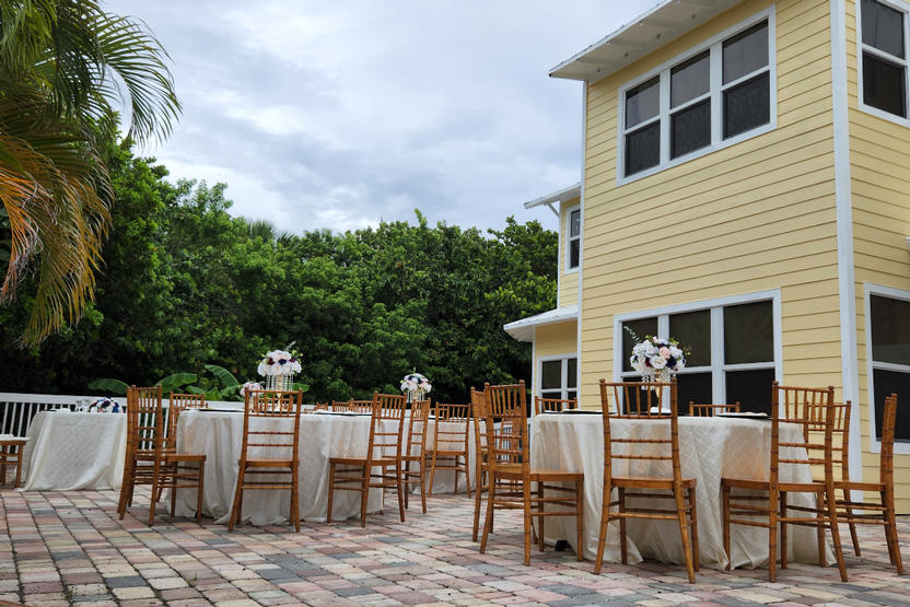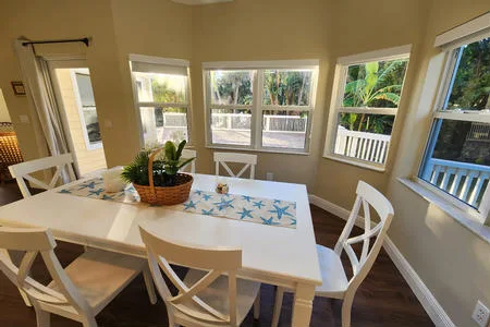 Enjoy peace of mind with brand-new impact windows and doors, delight in the elegant dining room ideal for large family gatherings. The full commercial kitchen comes complete with a fire suppression system, hood & propane gas. Natural light fills every room, creating a bright and welcoming atmosphere. On a cold winter you can snuggle with your family in front of the fireplace in the spectacular great room featuring 20ft ceilings and an elegant chandelier. Nestled on an expansive waterfront corner lot of over 28,000 square feet, this property boasts a private boat dock, perfect for water adventures such as kayacking & fishing, and is located in the serene town of North Hutchinson Island. Enjoy the breathtaking sunset on the Lagoon while lounging on your back porch, have cocktails as you listen to the waves from your 2nd floor oceanfront deck, and a romantic walk on the beautiful white sandy beach just steps away. The Bed & Breakfast boasts a large patio great for entertaining and parties. The Bed & Breakfast is also licensed as a Special Events Venue for Weddings & Private Parties. The Bed & Breakfast also has a 2 car garage as well as a parking area that can accommodate up to 17 cars.