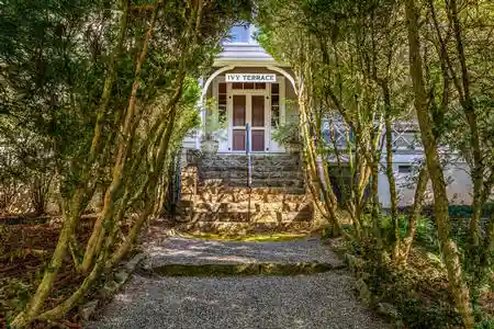 "Ivy Terrace" is an eight bedroom / eight en-suite bath inn that retains its preserved character with original fireplace, floors and woodwork. Functional floor plan allows for the owner/operator to live in residence, if desired. A commercially licensed kitchen, large dining room, and modern updates allows for an elevated guest experience. Two cottages and stunning gardens offer a range of possible programming options including small weddings, retreats, wellness and artistic pursuits. Step onto multiple porches and listen to the sounds of the waterfall features, soak in the hot tub, or stroll the grounds under century old trees. A short distance from Main Street Saluda, Pearson Falls, and the future Saluda Grade Trail. 30 minutes to downtown Asheville, NC and Biltmore Estate, 24 minutes to Asheville Airport, 15 minutes to Hendersonville, NC.